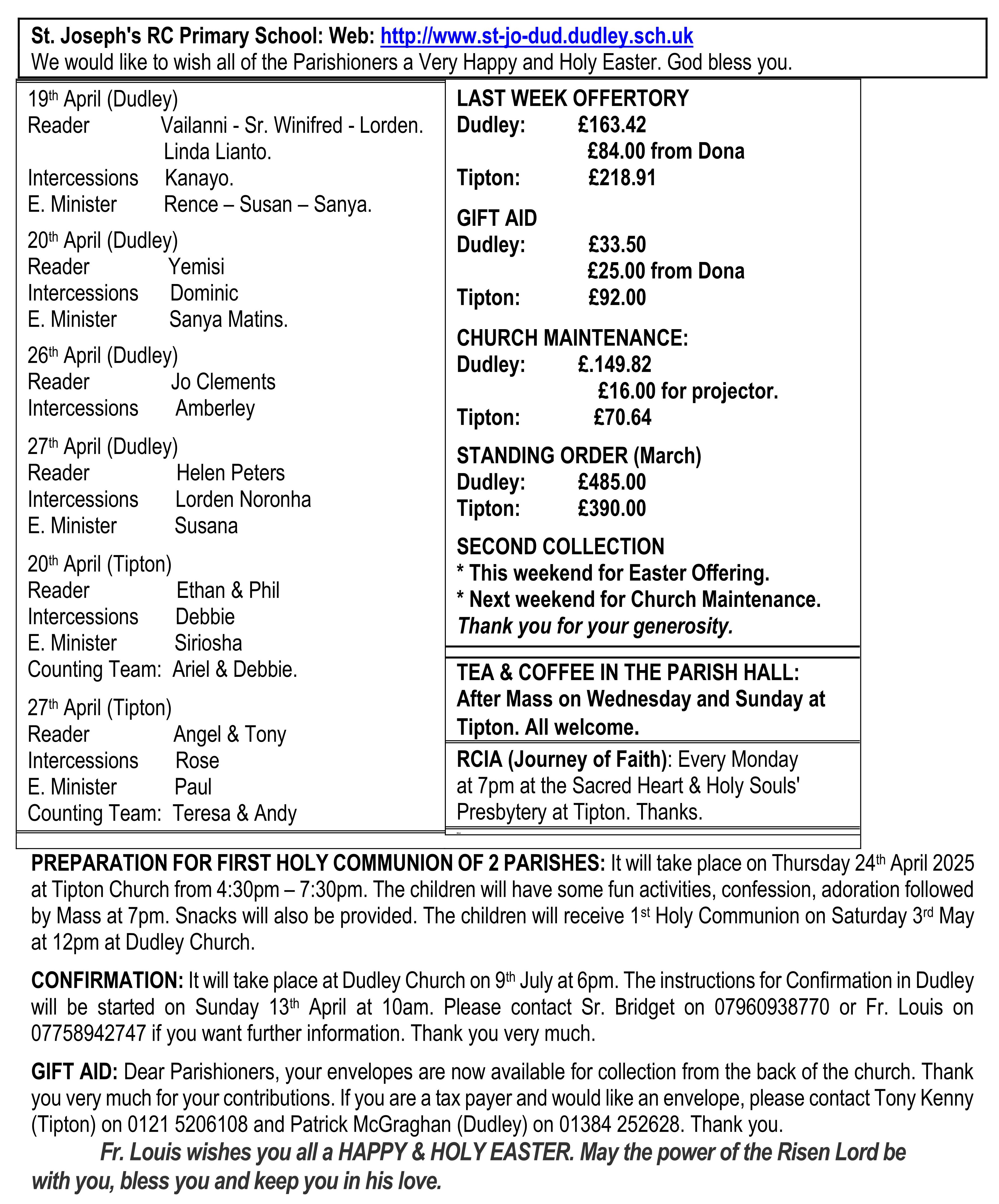 | Parish Sister for Dudley is Sr. Bridget, Daughters of Divine Love. Tel.no. 07960938770 |